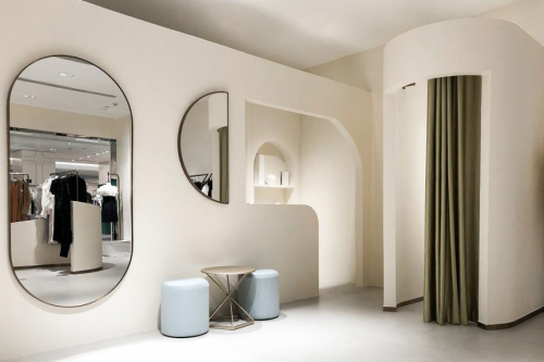 极简主义与解构主义的融合,既是店铺给人的第一视觉印象,更代表着BLANCORE的设计风格。以“Forget the Boundaries”为核心理念的BLANCORE,一直以柔和的女性视角表达着突破服装形式界限的主旨。
